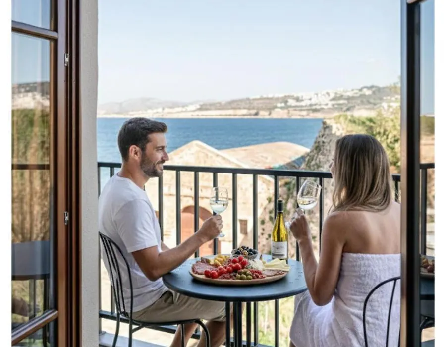 8-slaapkamer Ethos Suites liggen in de wijk Chania - Oude Binnenstad en omvatten fietsverhuur. Dit appartement heeft een terras en met het uitzicht op de zee, en ligt op ongeveer 5 minuten wandelafstand van de Oude Venetiaanse Haven van Chania.